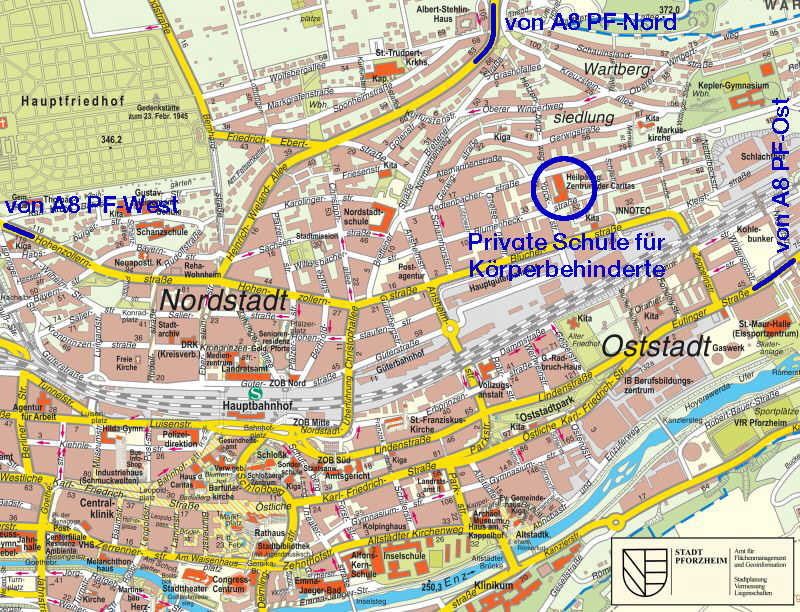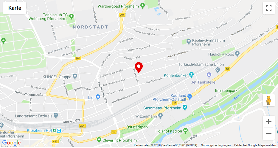 - Pforzheim-Ost von der A8 abfahren, dann rechts in Richtung Pforzheim auf der Bundesstraße 10